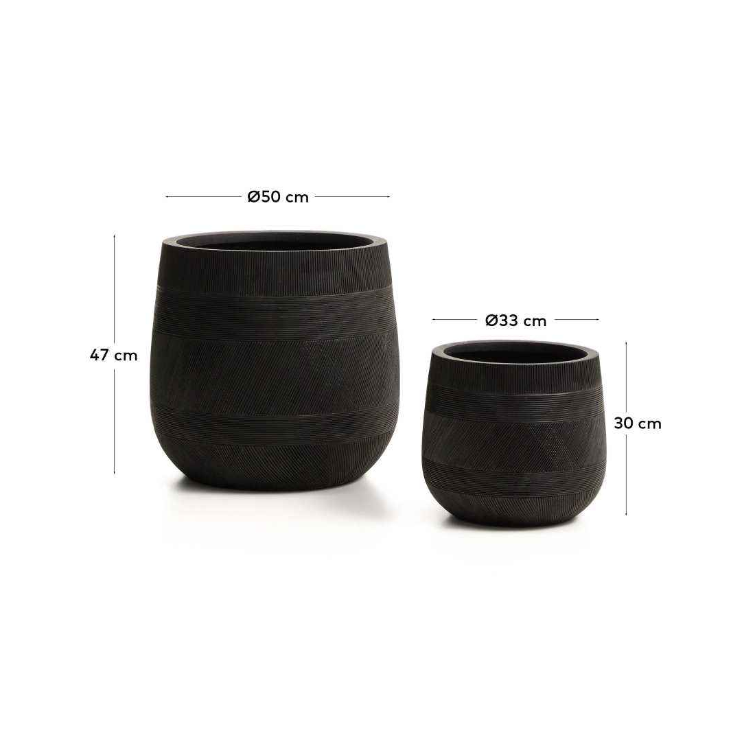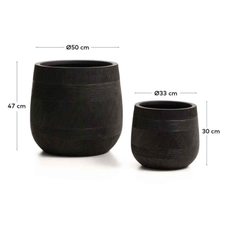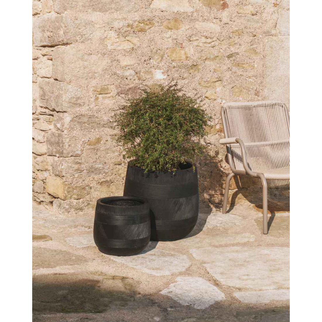 Tato sada květináčů vyniká organickým designem a zaoblenými tvary, které dodávají hřejivost a měkkost jakémukoli prostoru. Jeho všestranný styl z něj činí ideální volbu pro interiér i exteriér, snadno se přizpůsobí různým prostředím. Vyrobeno z polycementu, materiálu vyrobeného z pryskyřice a kamenného prachu, nabízí vzhled kamene s vysokou trvanlivostí a lehkostí, což usnadňuje manipulaci a zajišťuje jeho trvanlivost. Ideální pro zvýraznění přirozené krásy vašich rostlin, je to dekorativní kus, který kombinuje jednoduchost a eleganci a mění každý kout na oázu svěžesti a modernosti. Polycement je materiál vyrobený z pryskyřice a kamenného prachu, který imituje povrchovou úpravu cementu a nabízí vysokou odolnost a lehkost. S otvorem v základně pro vypouštění přebytečné vody.