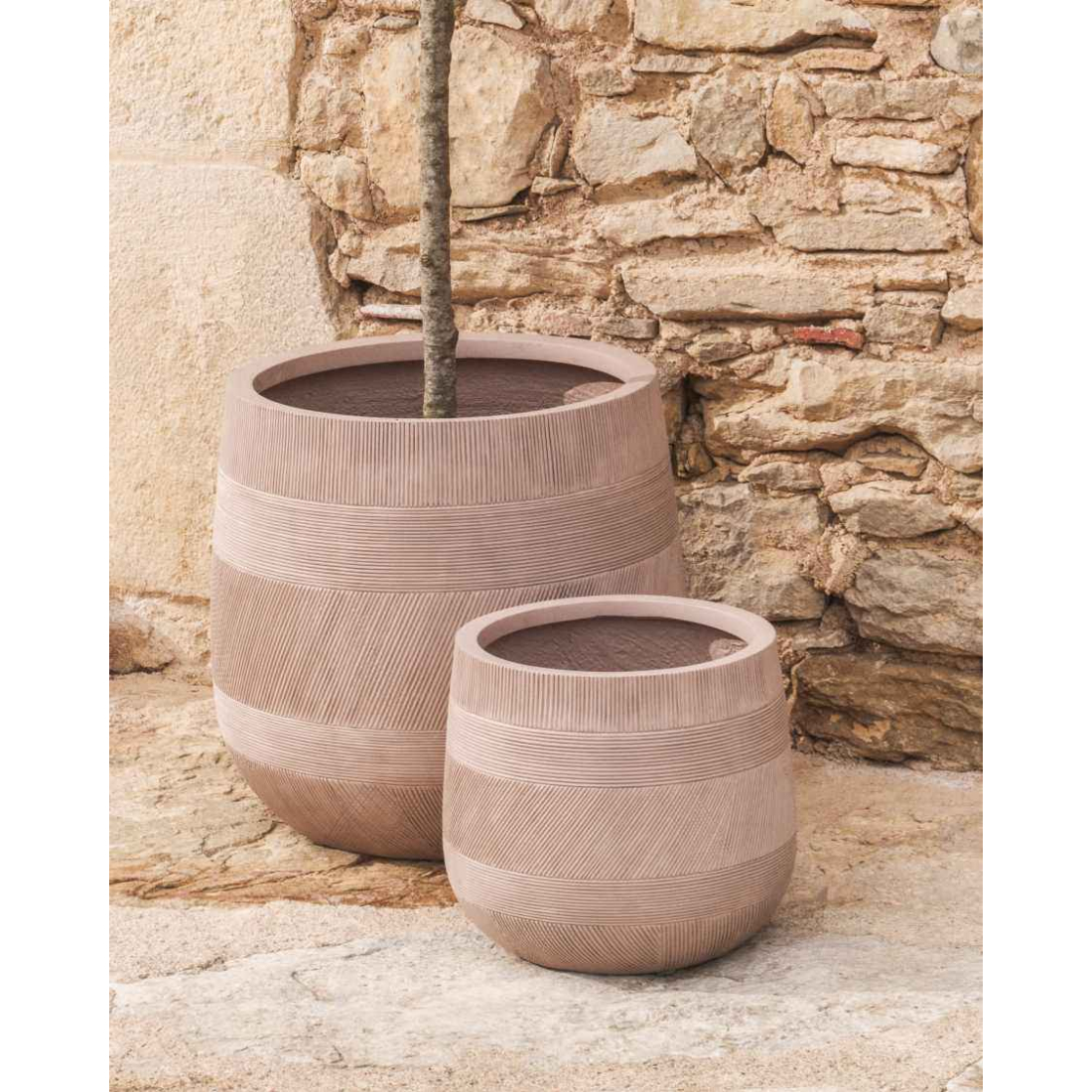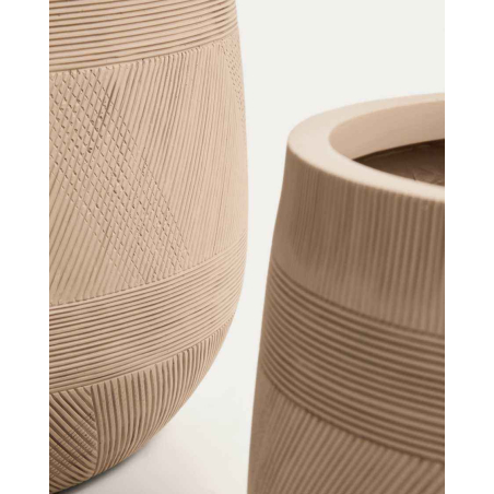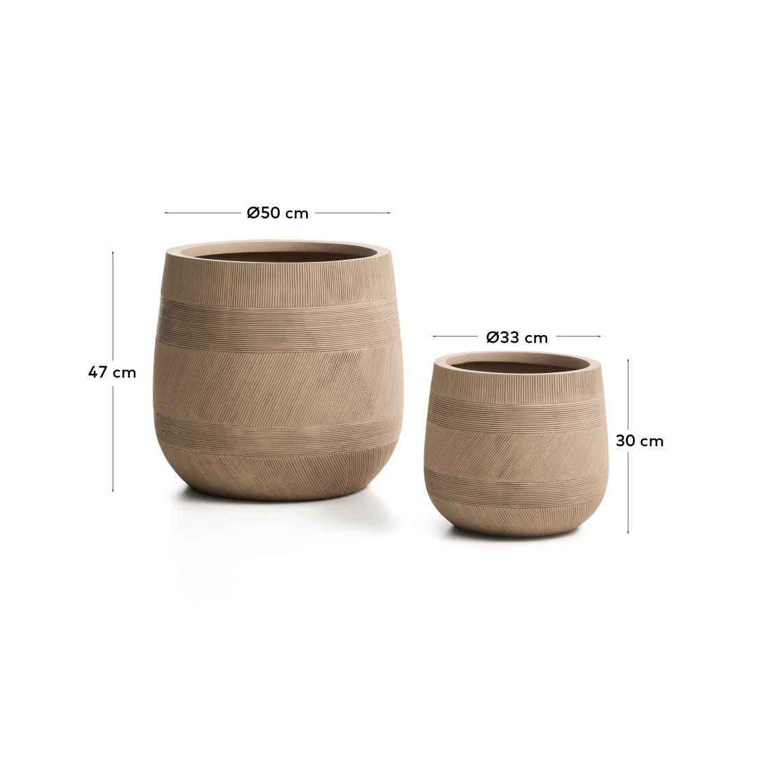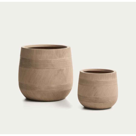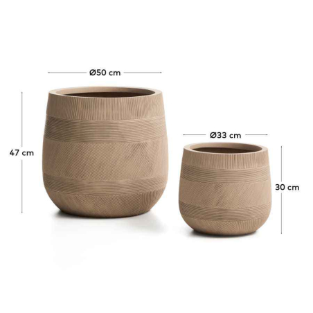 Tato sada květináčů vyniká organickým designem a zaoblenými tvary, které dodávají hřejivost a měkkost jakémukoli prostoru. Jeho všestranný styl z něj činí ideální volbu pro interiér i exteriér, snadno se přizpůsobí různým prostředím. Vyrobeno z polycementu, materiálu vyrobeného z pryskyřice a kamenného prachu, nabízí vzhled kamene s vysokou trvanlivostí a lehkostí, což usnadňuje manipulaci a zajišťuje jeho trvanlivost. Ideální pro zvýraznění přirozené krásy vašich rostlin, je to dekorativní kus, který kombinuje jednoduchost a eleganci a mění každý kout na oázu svěžesti a modernosti. Polycement je materiál vyrobený z pryskyřice a kamenného prachu, který imituje povrchovou úpravu cementu a nabízí vysokou odolnost a lehkost. S otvorem v základně pro vypouštění přebytečné vody.