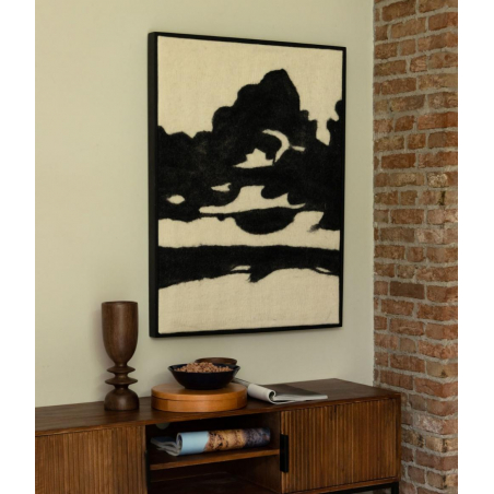 Toto nástěnné umění je zcela ručně vyrobeno z plsti, což vytváří teplý vzhled a zároveň zlepšuje akustiku prostoru. Tvary jsou inspirovány pohyby větru. Dodává se v rámu z mangového dřeva.