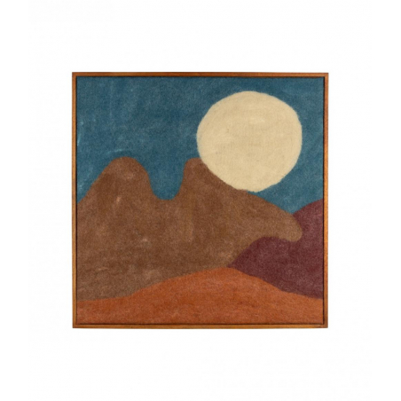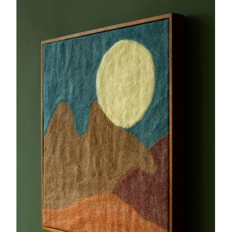 Tato nástěnná dekorace je vyrobena z plsti v nádherných teplých barvách. Materiál také zlepšuje akustiku místnosti. Organické tvary nástěnného umění evokují hory s jasnou oblohou a měsícem v úplňku. Je obsažen v krásném rámu z kvalitního mangového dřeva v teplém odstínu.