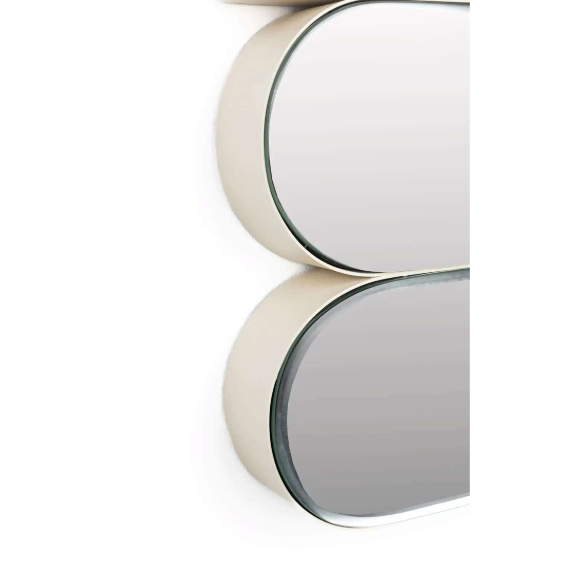 Iron------Glamour sestává z osmi menších zrcadel, která vám umožňují obdivovat se z různých úhlů. Zrcadla jsou zakončena fazetovanými hranami, které vytvářejí stylový, luxusní vzhled. Díky čtyřem bodům na zavěšení můžete zrcadlo připevnit čtyřmi různými způsoby, čímž získáte jiný vzhled. Olemovaný kovovým rámem. Dostupné v různých barvách. Zkombinujte mezi sebou několik zrcadel Glamour.