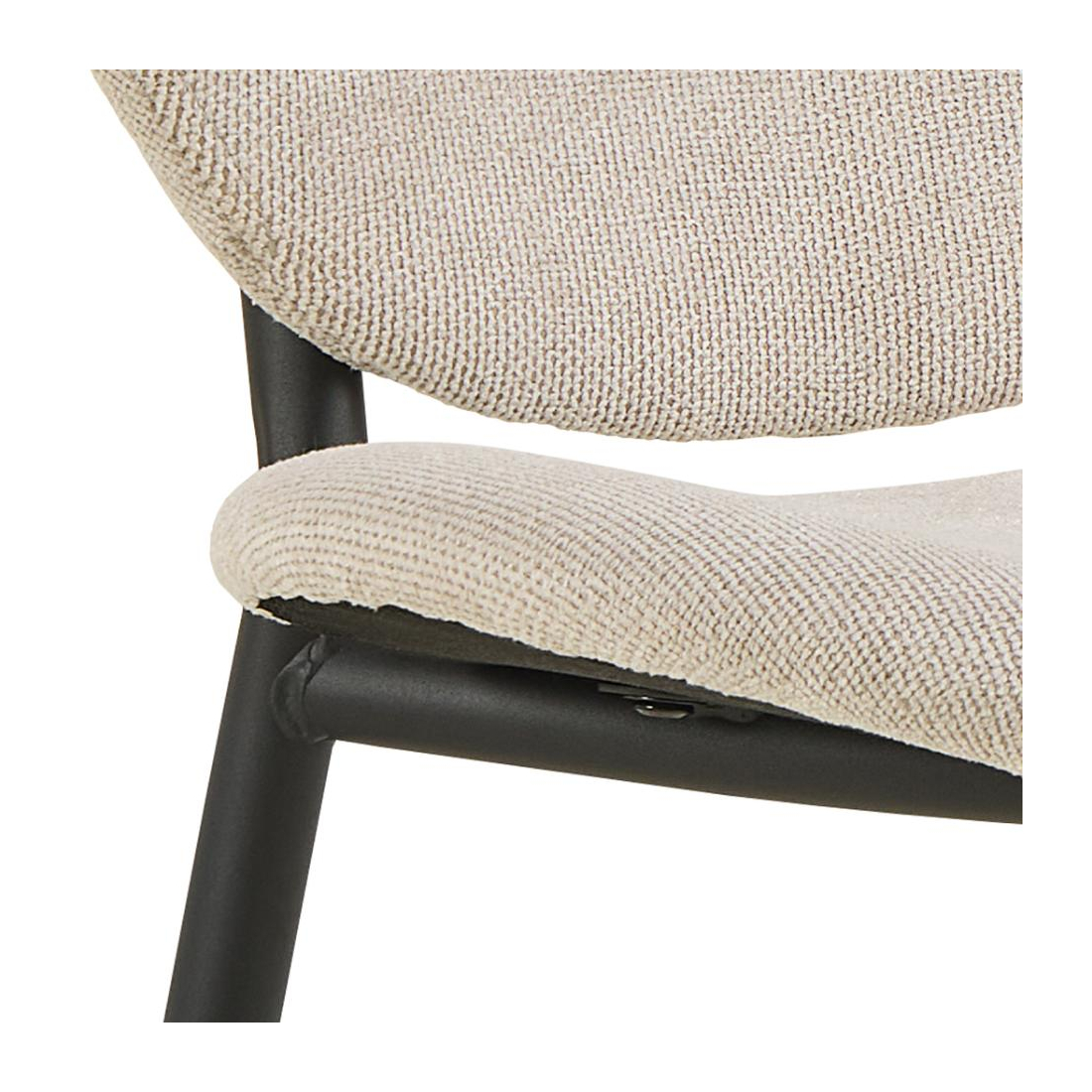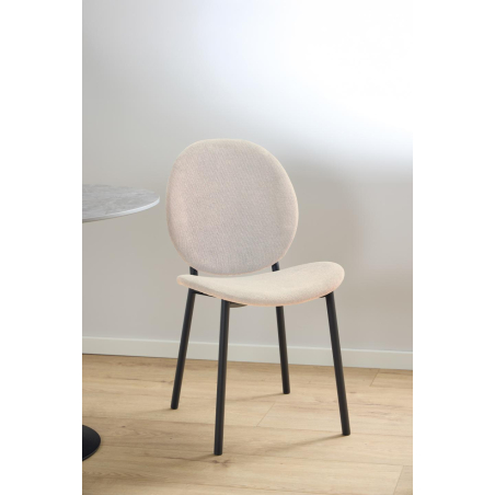 Výrazná jídelní židle s odkrytým ocelovým rámem s černým práškovým nástřikem. Černý ocelový rám se skládá z kulatého sedáku a opěradla a vytváří jemný kontrast, který umocňuje moderní estetiku židle. Dobře se integruje do různých interiérových stylů.