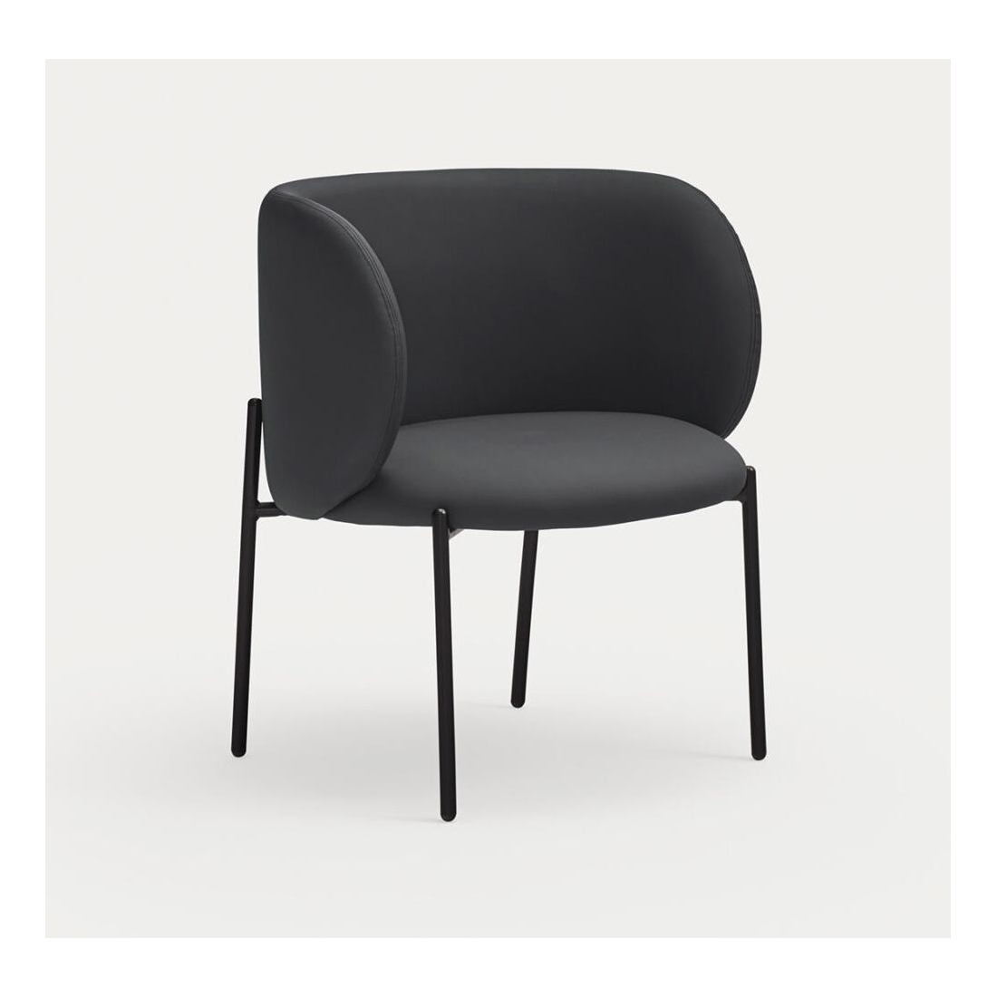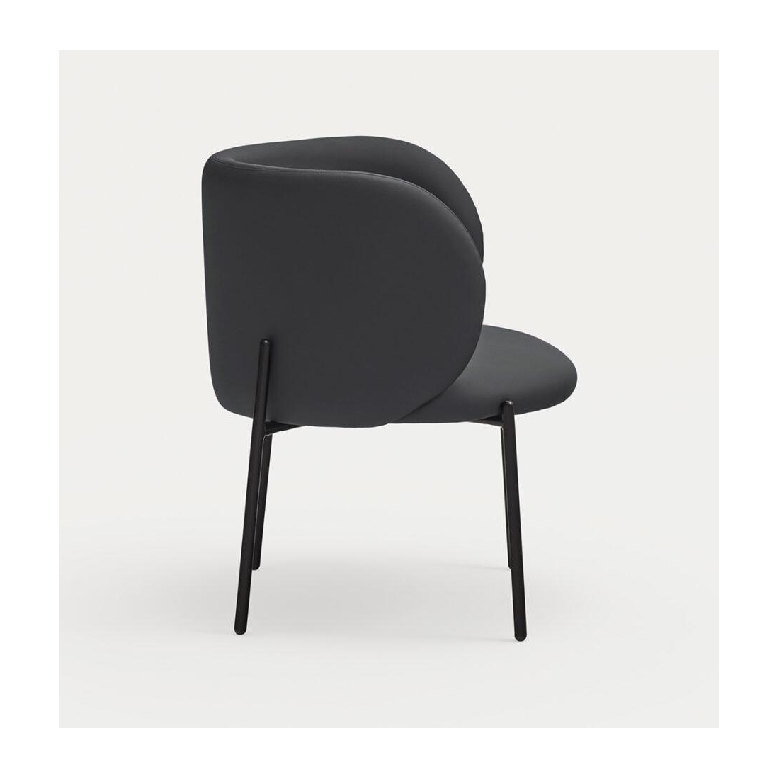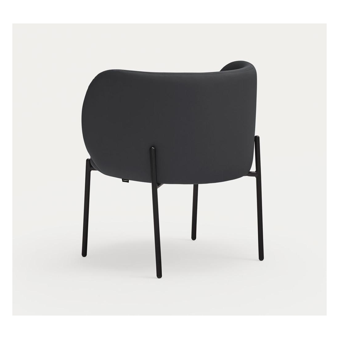 Elegantní křeslo s nadčasovými tvary. Opěradlo je vyrobeno z překližky a čalouněno v eko kůži, zatímco nohy jsou vyrobeny z kovu. Pravidelně vysávat vhodným nástavcem od vysavače.