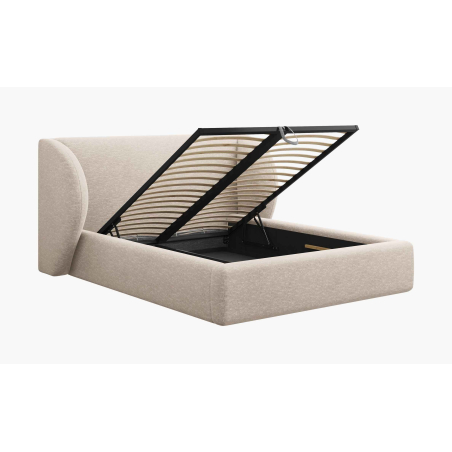 Béžová čalouněná postel NAHIRI se sklápěcím roštem a úložným prostorem. Měkká žinylková tkanina s povrchovou úpravou pro snadné čištění. Tato čalouněná postel kombinuje design a funkčnost a nabízí pohodlný spánek a více úložného prostoru bez kompromisů ve stylu. Má výklopný rošt a díky plynovému pístovému mechanismu umožňuje snadný a snadný přístup do...