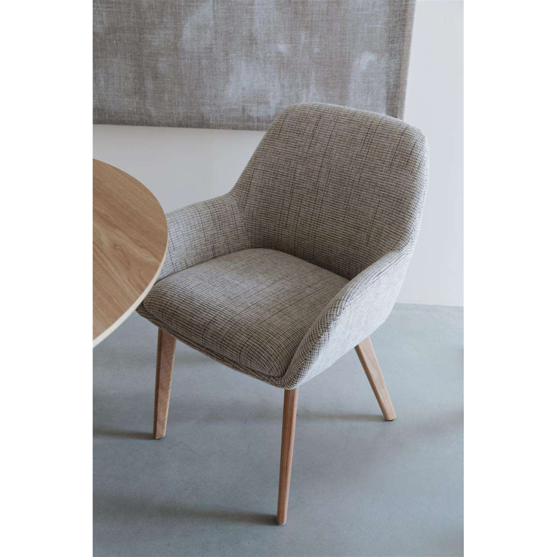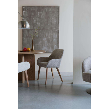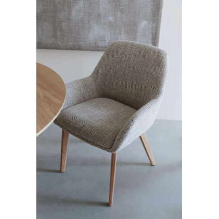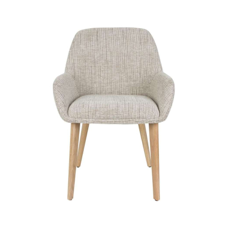 Designová, jídelní židle Jenny, čalouněná z tkané látky. Zaoblené povrchy a opora zad poskytují židli velké pohodlí. Tkaná látka Hope na dotek působí měkce a zaujme rovnoměrným, kompaktním vzorem vazby.
