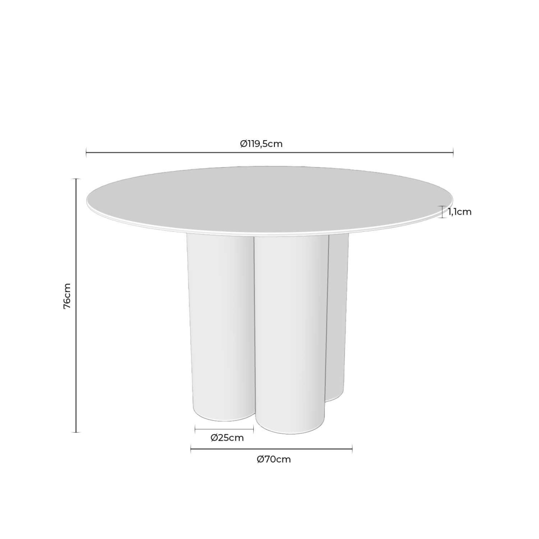 TRACYIN jídelní stůl vyniká svým sochařským a sofistikovaným designem. Jeho kulatý porcelánový talíř s travertinovým efektem o průměru 120 cm a tloušťce 11 mm poskytuje elegantní a nadčasovou estetiku. Noha se skládá ze čtyř dřevěných válců, které jsou k dispozici v ořechovém provedení, které poskytují sílu a jedinečný dekorativní charakter. Tato konstrukce zaručuje stabilitu. Ideální pro ty, kteří hledají stůl s výrazem, ušlechtilými materiály a designem, který nezůstane bez povšimnutí.