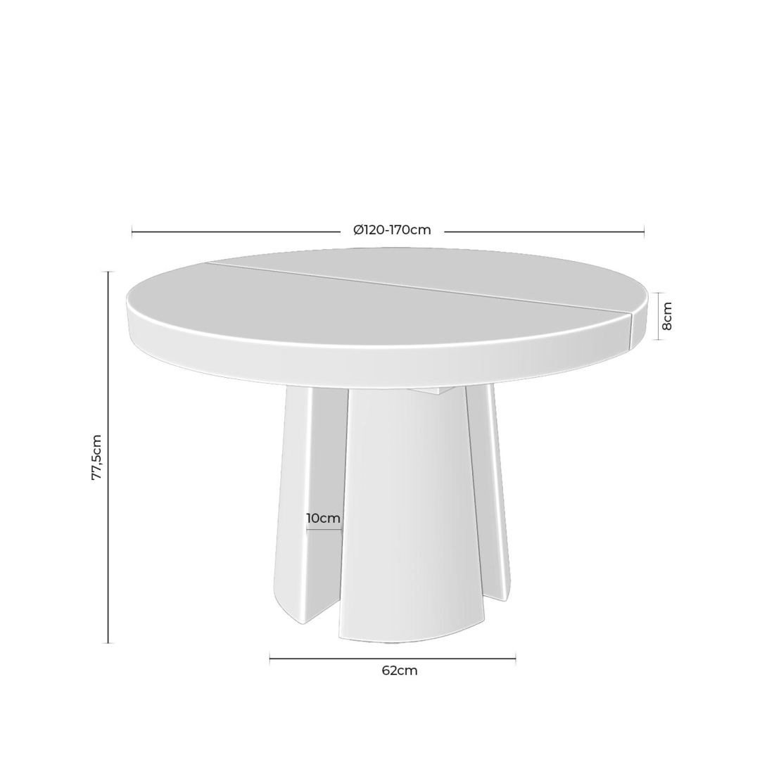 Skládací kulatý stůl MARCELLA je klenotem moderního designu, který kombinuje teplo, funkčnost a ohromující siluetu. Vyrobeno z přírodní dubové dýhy, jeho 120cm kulatý povrch, roztažitelný až do 170cm, se plynule rozkládá od středu, aby vyhovoval malým nebo širším setkáním, takže je kus stejně všestranný jako elegantní. Co tento stůl opravdu odlišuje, je jeho originální design nohou: centrální struktura, která se otevírá ve tvaru šikmého kříže a poskytuje sochařský efekt, který povznáší celek nad konvenční. Kromě zajištění stability se tato podpora stává vizuálním ohniskem nábytku a zachycuje vzhled z jakéhokoli úhlu. Tento stůl, který je ideální pro severské, moderní nebo japonské jídelny, se vyznačuje světlými prostory, kde jsou protagonisty světlé dřevo a čisté linie.