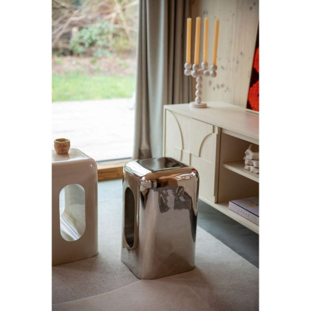 Konstrukční odkládací stolek CREEK v chromovaném provedení. Má kompaktní a poutavý tvar. Zaoblené hrany a rohy mu dodávají měkký, organický pocit, který dokonale zapadne do každého moderního domova. A oválný výřez? Hravý detail, který slouží jako praktický úložný prostor – ideální pro časopisy nebo malé předměty.