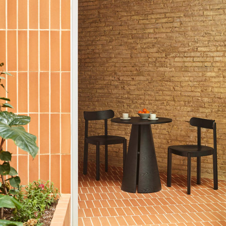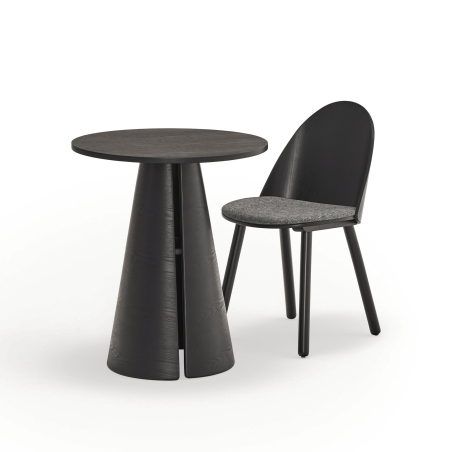 Kulatý stůl Teulat CEP je určen pro náročné uživatele, kteří si potrpí na originální design. Vrchní a nohy jsou dýhované přírodním nebo jasanovým dřevem mořeným černě. Tloušťka vrchní desky: 18 mm. Nohy: Kaučuková překližka. Čistit vlhkým hadříkem nebo houbou, nepoužívat agresivní a abrazivní čističe.