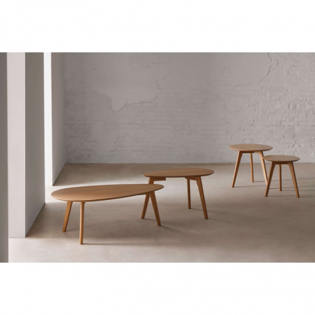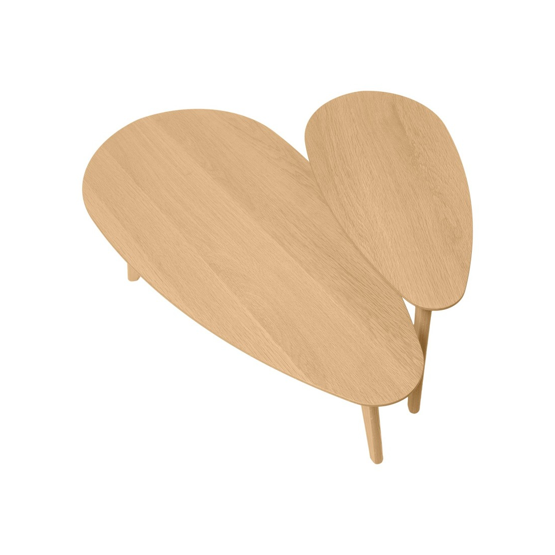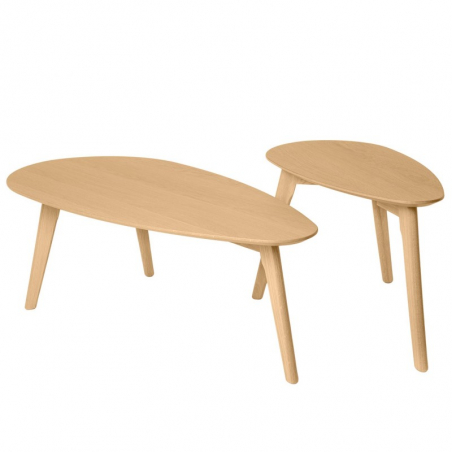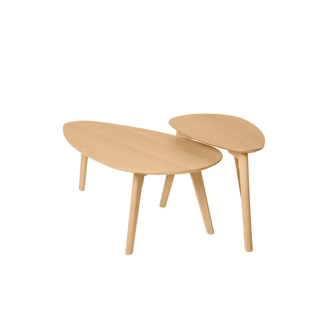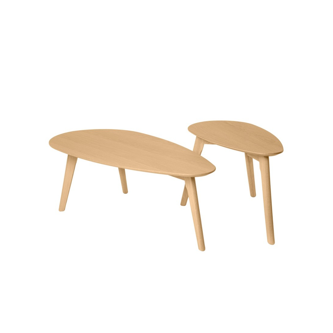 Zostava dvou konferenčních stolíků ve škandinávském stylu. Masívne dubové nohy odolné a MDF doska s prírodnou dubovou dyhou..