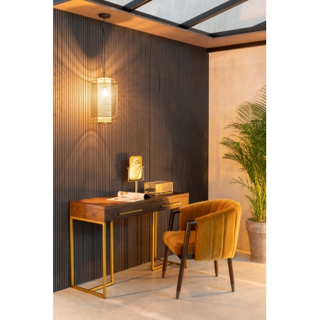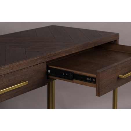 Konzolový stolek DUTCHBONE CLASS má dýhové tělo z akáciového dřeva s PU lakováním. 20 mm ocelový rám s povrchovou úpravou v imitaci starožitné mosazi.