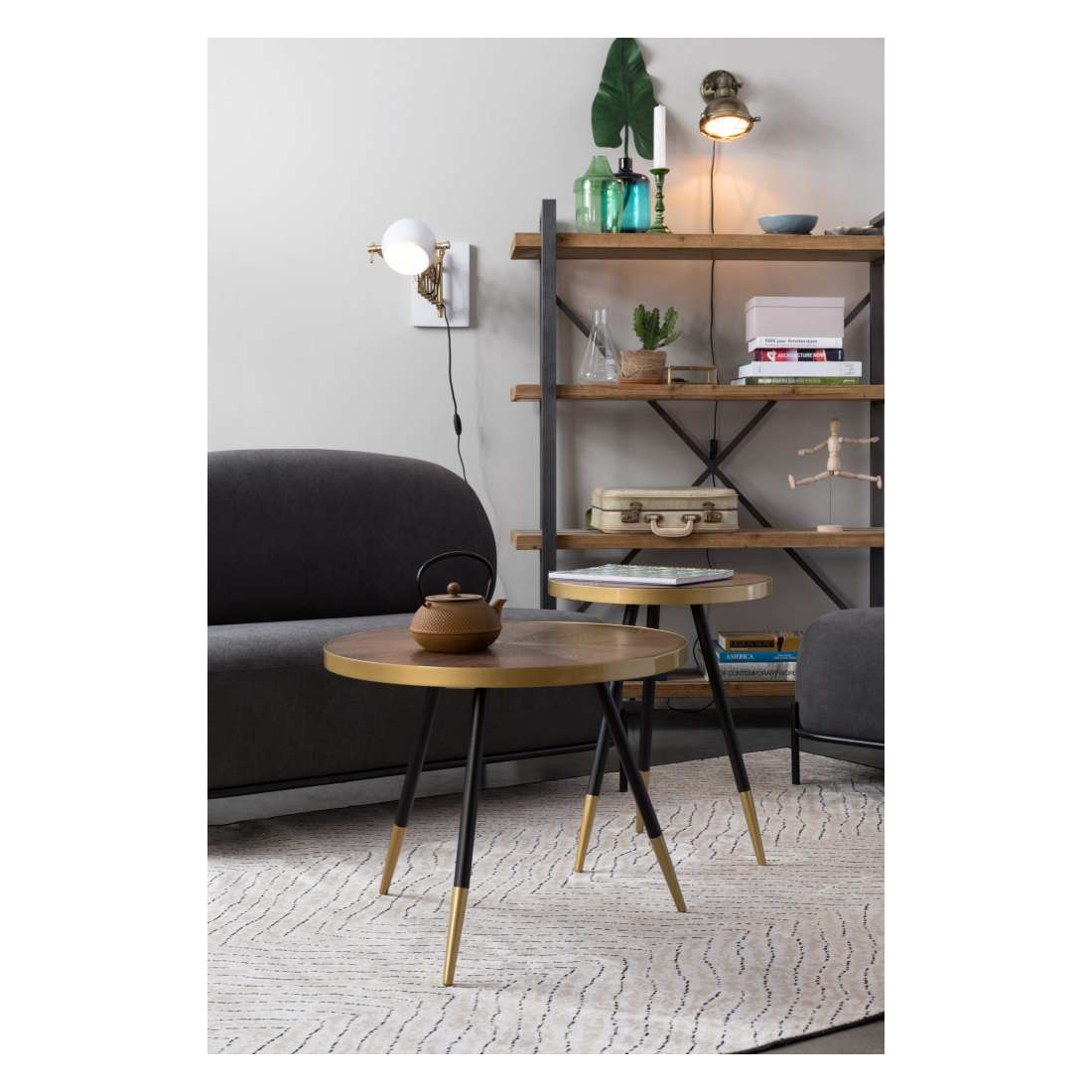 Stůl WHITE LABEL LIVING DENISE ROUND má 30 mm tlustou stolovou desku z jasanového dřeva v barevném provedení ořech. Železný lem a koncovky nohou jsou malované do zlata.Rozměry (VxŠxH): 75 x 91 x 91 cmBarva: přírodní, černá, zlatáMax. zatížení: 80 kgMateriál: MDF, dřevo, kov