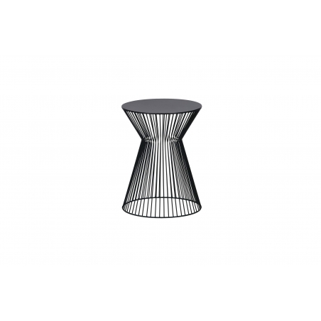 SUUS je příruční kovový stolek stříkaný v práškové zlaté barvě.