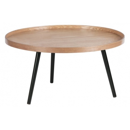 Tento prostorný konferenční stolek od značky WOOOD má praktickou desku se zvýšeným okrajem a průměrem 78 cm. Díky povrchové úpravě v jasanové dýze a minimalistickému designu se hodí do každého stylu. Dřevěné nohy jsou lakované matnou barvou