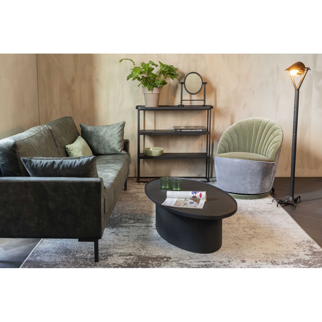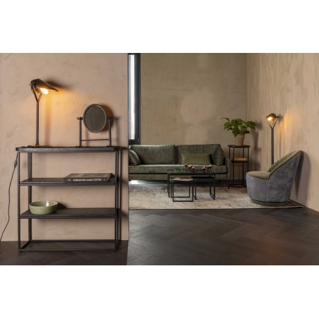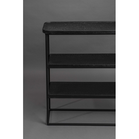 Série WINSTON je vyrobena novým revolučním způsobem použití kovu, který se nazývá tekutý kov. Při tomto procesu se skutečný kov zahřívá a roztaví na přesnou teplotu a poté se nalije na dřevěnou základnu. Výsledkem je tenká vrstva kovu odolného vůči praskání. Matná černá námořní překližka potažená tekutým kovem. Polyuretanové nožičky.