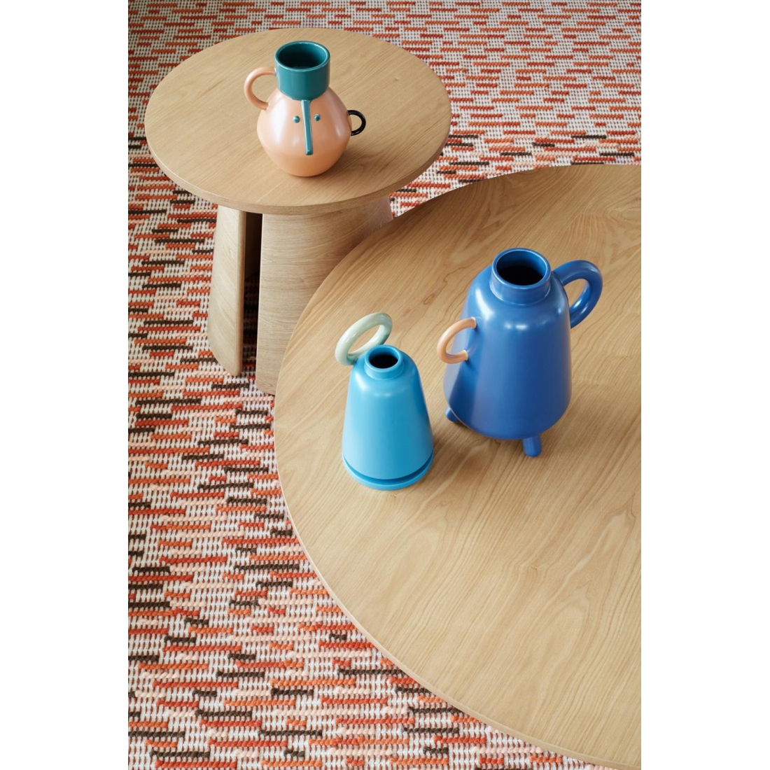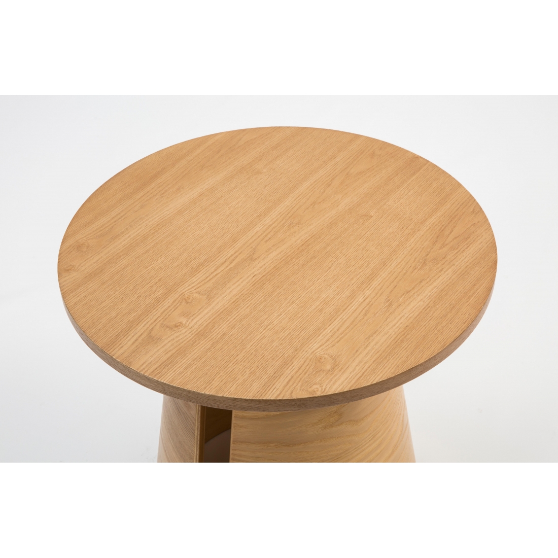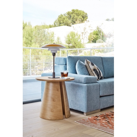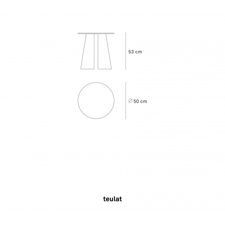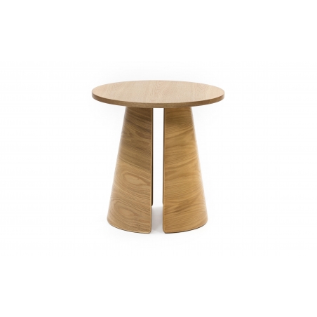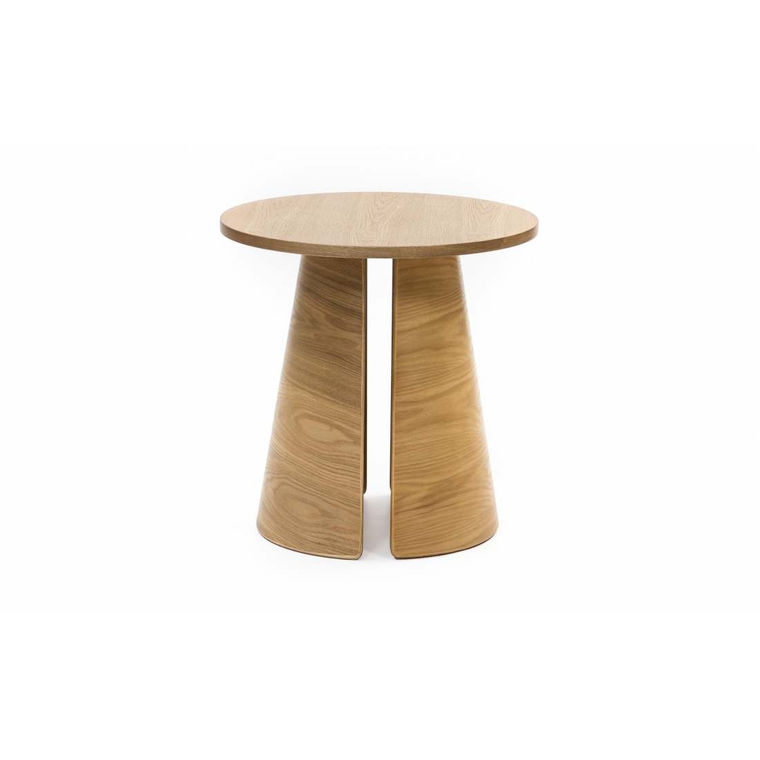Kulatý stolek Teulat CEP je určen pro náročné uživatele, kteří si potrpí na originální design. Vrchní a nohy jsou dýhované přírodním nebo běleným dubem nebo jasanovým dřevem mořeným černě. Tloušťka vrchní desky: 18 mm. Nohy: Kaučuková překližka. Čistit vlhkým hadříkem nebo houbou, nepoužívat agresivní a abrazivní čističe.