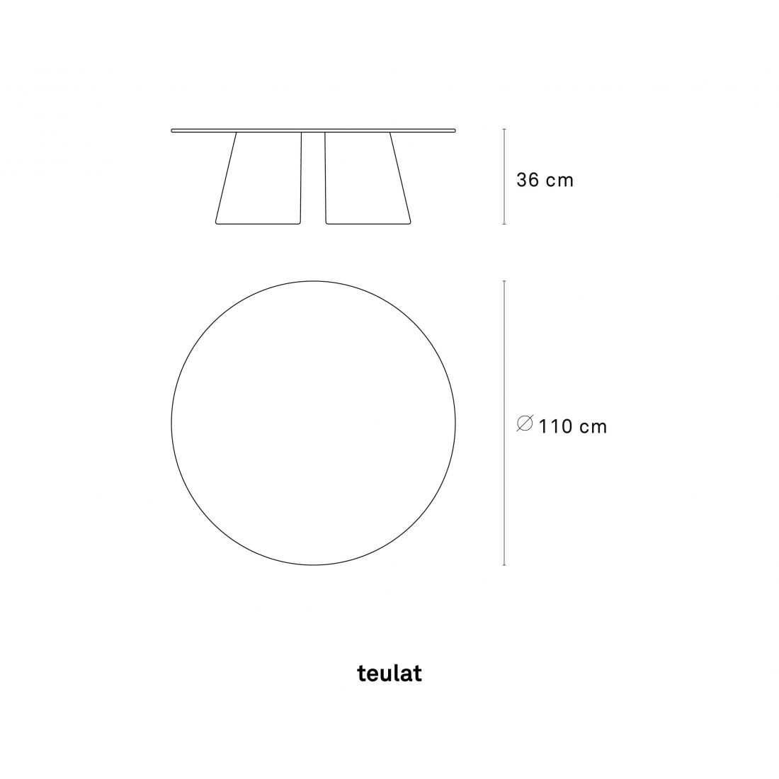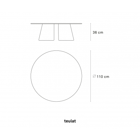 Kulatý stůl Teulat CEP je určen pro náročné uživatele, kteří si potrpí na originální design. Vrchní a nohy jsou dýhované přírodním nebo běleným dubem nebo jasanovým dřevem mořeným černě. Tloušťka vrchní desky: 18 mm. Nohy: Kaučuková překližka. Čistit vlhkým hadříkem nebo houbou, nepoužívat agresivní a abrazivní čističe.