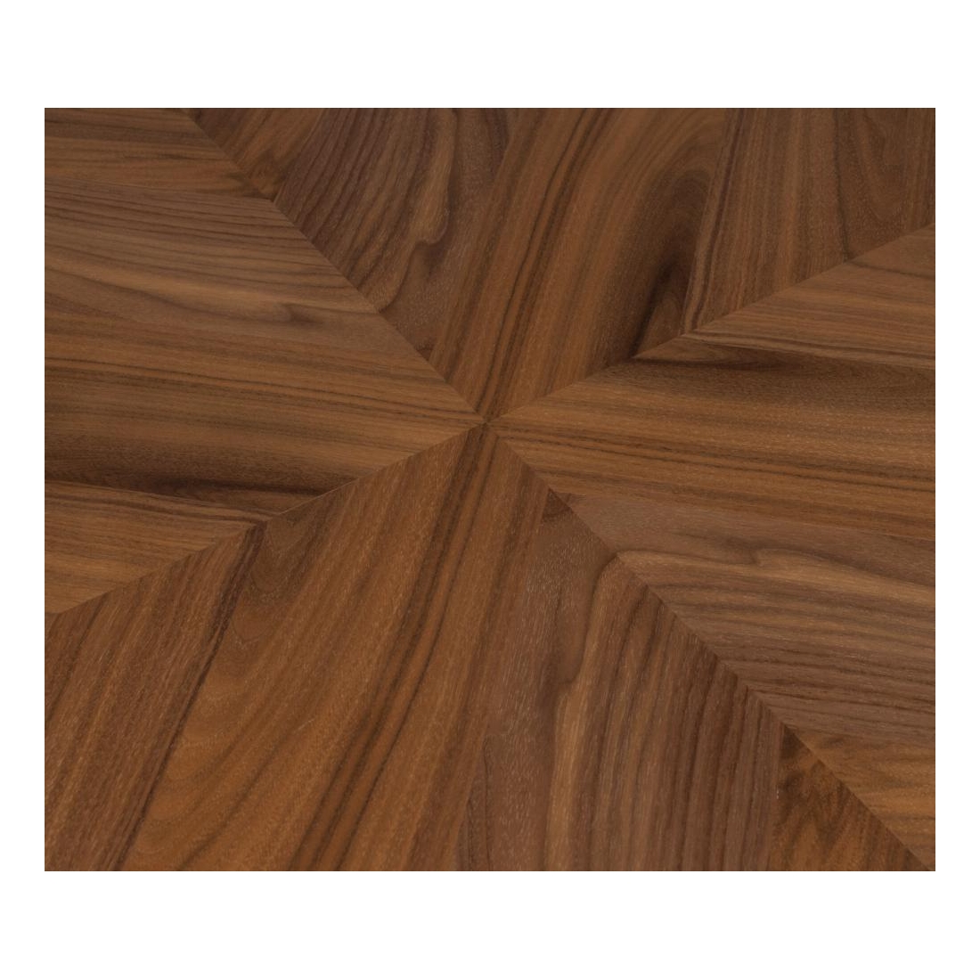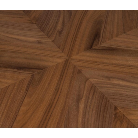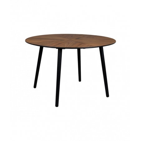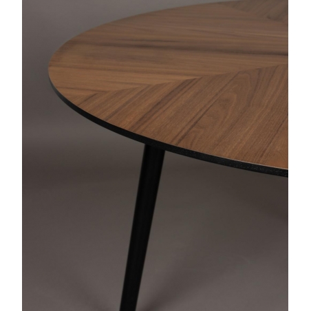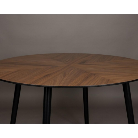 Kulatý jídelní stůl Clover s deskou z kaučuku v dekoru ořechového dřeva.