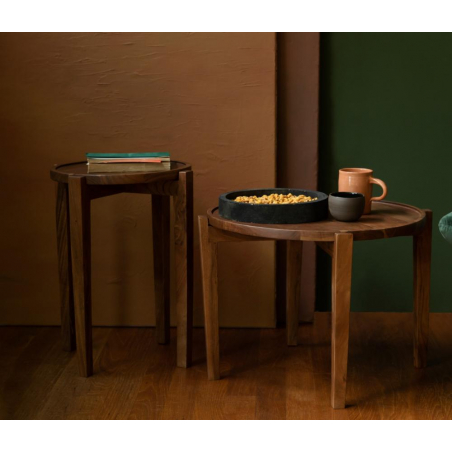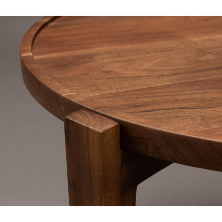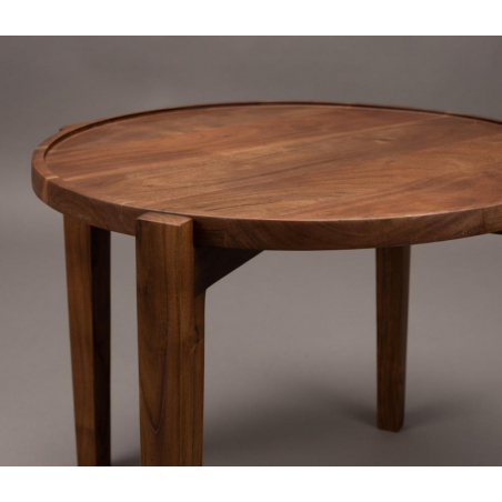 Tento prostorný konferenční stolek od značky WOOOD má praktickou desku se zvýšeným okrajem a průměrem 78 cm. Díky povrchové úpravě v jasanové dýze a minimalistickému designu se hodí do každého stylu. Dřevěné nohy jsou lakované matnou barvou