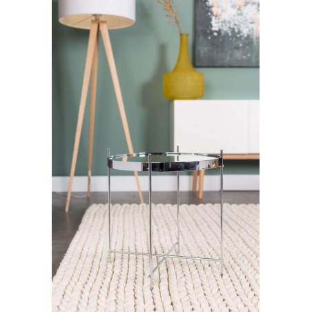 Konferenční stolek ZUIVER ve skandinávském designu ve třech velikostech a černé, měděné a stříbrné barvě. Rozkládací kovová konstrukce a odnímatelná vrchní skleněná deska stolu.