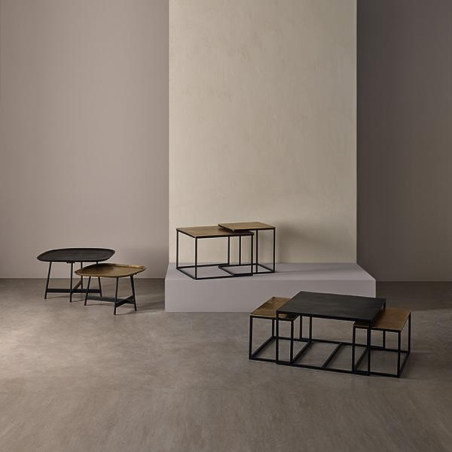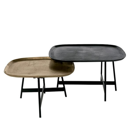 Sada 2 konferenčních stolků v minimalistickém stylu. Stolky jsou vyrobeny z hliníku v černo-zlatých tónech s jedinečným a inovativním designem a zaoblenou povrchovou úpravou, díky čemuž upoutá svou originalitou kdekoli.