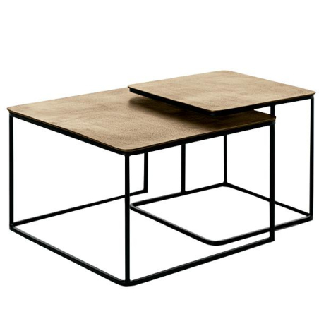 Sada 2 konferenčních stolků v minimalistickém stylu. Stolky jsou vyrobeny z hliníku zlaté barvy a černých nohou s jedinečným a inovativním designem a zaoblenou povrchovou úpravou, díky čemuž upoutá svou originalitou kdekoli.