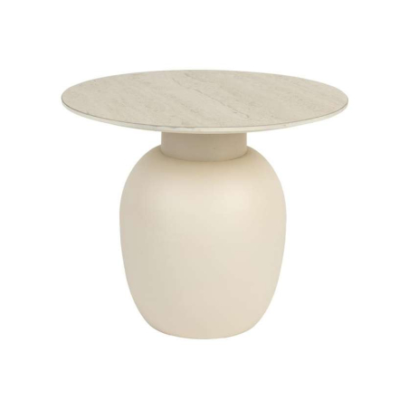 Karula je harmonickou směsí přírodních designových prvků. Jeho keramická deska se může pochlubit krásným travertinovým vzhledem, který bez námahy ladí s kovovou základnou. Zklidňující béžový odstín a organický kulatý tvar dělají z této série dokonalý doplněk do vašeho obytného prostoru.