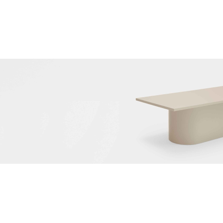 Designový konferenční stolek ve dvou barevných provedeních. Každý z kusů, které tvoří kus nábytku, přesně zapadá, což má za následek čistý objem, který spočívá na podstavci, který tvoří středovou nohu.