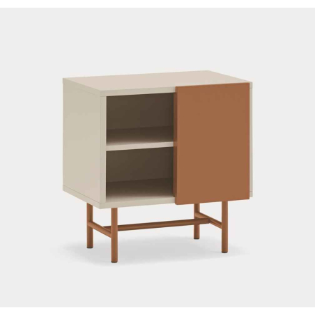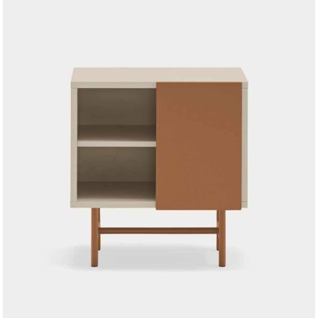 Nube skříňka vyrobená z MDF a kovu v několika barevných provedeních. Kolekce Nube vyniká svou jedinečnou a výraznou konfigurací díky posuvným dveřím, které lze libovolně polohovat podle individuálních preferencí.