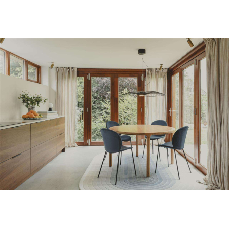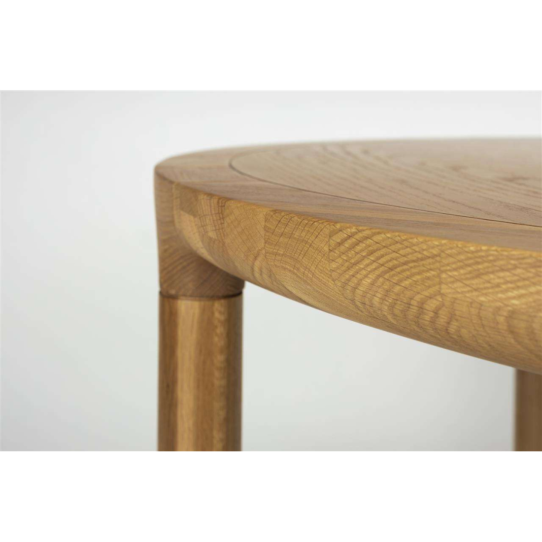 Jídelní kulatý stůl Storm z dubové dýhy s jasanovými nohami. Storm má krásně zaoblené dokončené tvary, silnou dřevěnou desku stolu a robustní nohy. Stůl má krásný vzor V-drážky a je k dispozici v různých velikostech, tvarech a barvách.