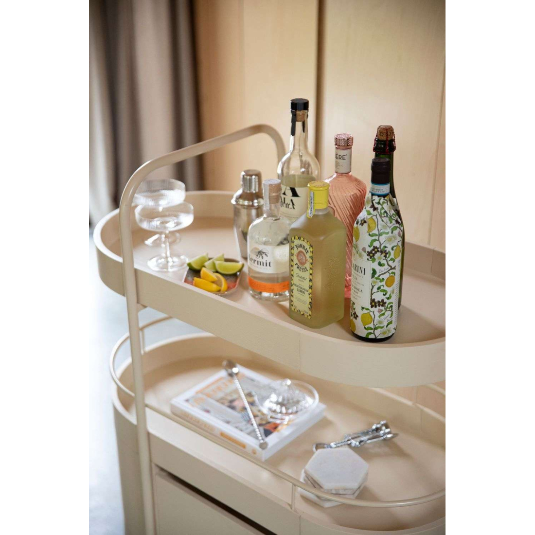 Konferenční stolek Jason vyrobený z kovu s práškovým nástřikem a dubové dýhy, obojí ve stejné matné barvě. Tato směs materiálů vytváří harmonický vzhled. Lze jej kombinovat se zbytkem kolekce.