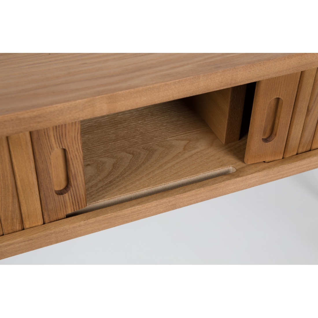 Chtěli byste něco originálního s typickým rukopisem ZUIVER? Série BARBIER vás určitě nezklame. Kombinace masivního jasanového dřeva a MDF desky v témže jasanovém dekoru. Pokud byste chtěli skrýt případný nepořádek na stole, vyřeší to zatahovací roletka.
