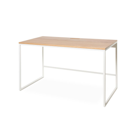 Psací stůl HUDSON je určen pro ty, kteří ve svém pracovním nebo studijním prostoru oceňují jednoduchost a funkčnost. S minimalistickým designem kombinuje kovový rám se syntetickou dýhou dubové barvy a vytváří teplý a moderní kontrast, který se přizpůsobí jakémukoli stylu dekorace. Součástí balení je praktický otvor pro vedení kabelů, který usnadňuje organizaci a udržuje povrch čistý. Bílý zadní panel poskytuje jemný a diskrétní dekorativní detail, ideální pro udržení elegantního vzhledu, i když stůl není připevněn ke stěně.