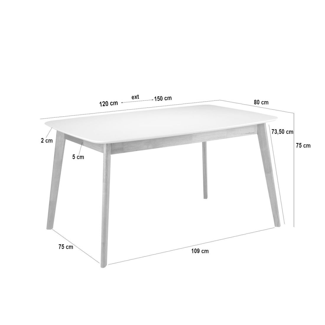 Rozměry (VxŠxH): 75 x 120 - 150 x 80 cm