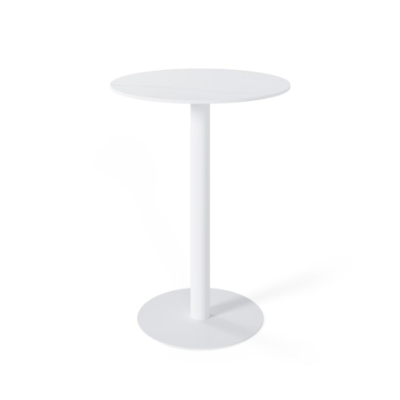 Kulatý vysoký barový stůl Lya z bílého kovu s porcelánovým vrcholem. Je určen pro dynamická prostředí, jako jsou kavárny, venkovní terasy, koktejlové prostory. K dispozici v bílé, černé nebo šedé barvě, nabízí odolný a elegantní povrch, který je ideální pro intenzivní používání. Dodává každému prostředí moderní a všestranný nádech. Vhodné pro vnitřní i venkovní prostory.