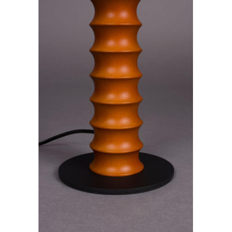 Designová stolní lampa HORACE s žebrovanou základnou z dubového dřeva. Jeho žebrovaný podstavec, vyrobený z masivního dubového dřeva, dodává každému prostoru přirozené teplo a retro charakter. Béžový bavlněný odstín s tmavě hnědým lemem dodává měkký, okolní lesk.