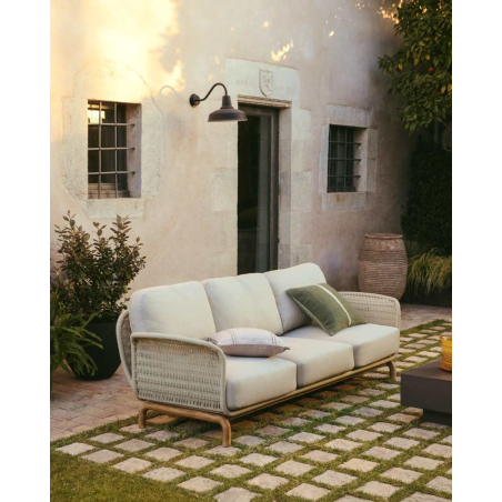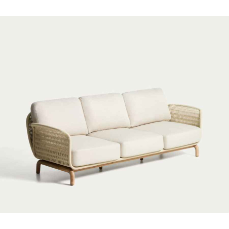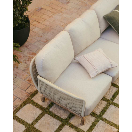 3místná pohovka ALIPA z masivního akátového dřeva, má sedák ručně tkaný s UV odolným lanem, součástí balení jsou i pohodlné odnímatelné polštáře. Masivní akátové dřevo se vyznačuje jedinečným zrnem v každém kousku, které dodává charakter a nadčasový vzhled. Dřevo je také silné, odolné a toleruje vlhkost a mikroorganismy zvenčí. Pro zachování jeho vlastností doporučujeme aplikovat vhodný konzervační prostředek na dřevo alespoň jednou ročně. Použité dřevo je 100% FSC certifikováno, z odpovědně obhospodařovaných lesů. Polštáře se snadno čistí, ale doporučujeme je schovat v deštivých dnech, abyste prodloužili jejich trvanlivost. Lze kombinovat se zbytkem kolekce. Vhodné pro vnitřní i vnitřní venkovní použití.