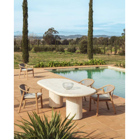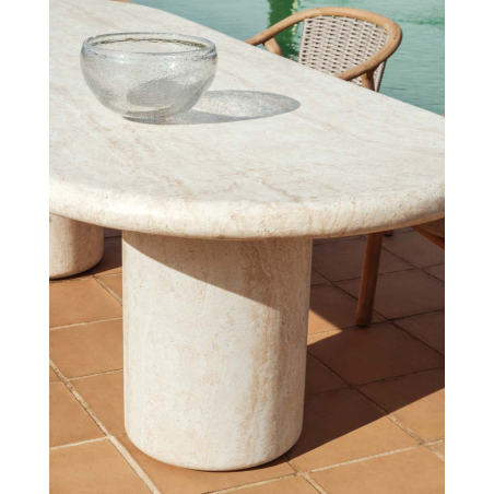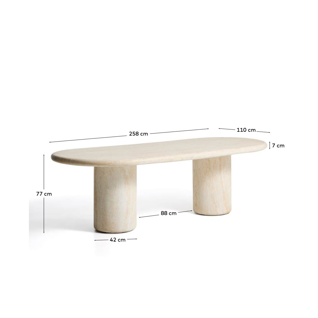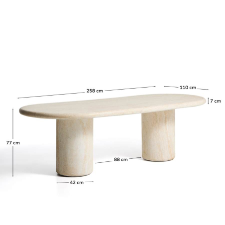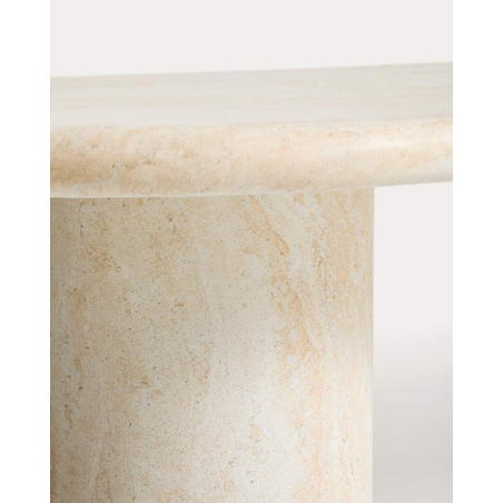 Cementový zahradní stůl DRASI s travertinovým efektem. Z cementově kompozitního materiálu vyztuženého skleněnými vlákny, který poskytuje vysokou odolnost Každý kus bude exkluzivní, s vlastními tóny a texturami. Vzhledem ke změnám povahy a teploty může cement obsahovat mikro-trhlinky a nesrovnalosti, které neovlivňují integritu produktu. Dá se kombinovat se zbytkem kolekce. Vhodný pro vnitřní a vnější kryté použití.