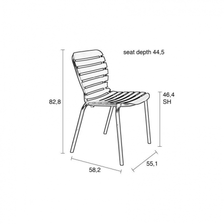 ZUIVER DUSK Vonda má hliníkové sedák a opěradlo nastříkané v práškové barvě. Křeslo je možne objednat ve třech barvách. Vhodné pro vnitřně a venkovní použití.