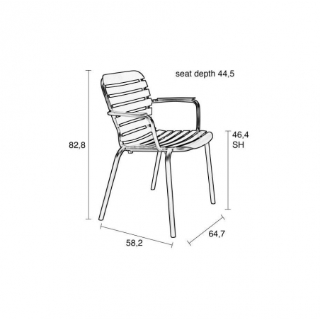 ZUIVER DUSK Vonda má hliníkové sedák a opěradlo nastříkané v práškové barvě. Křeslo je možne objednat ve třech barvách. Vhodné pro vnitřně a venkovní použití.