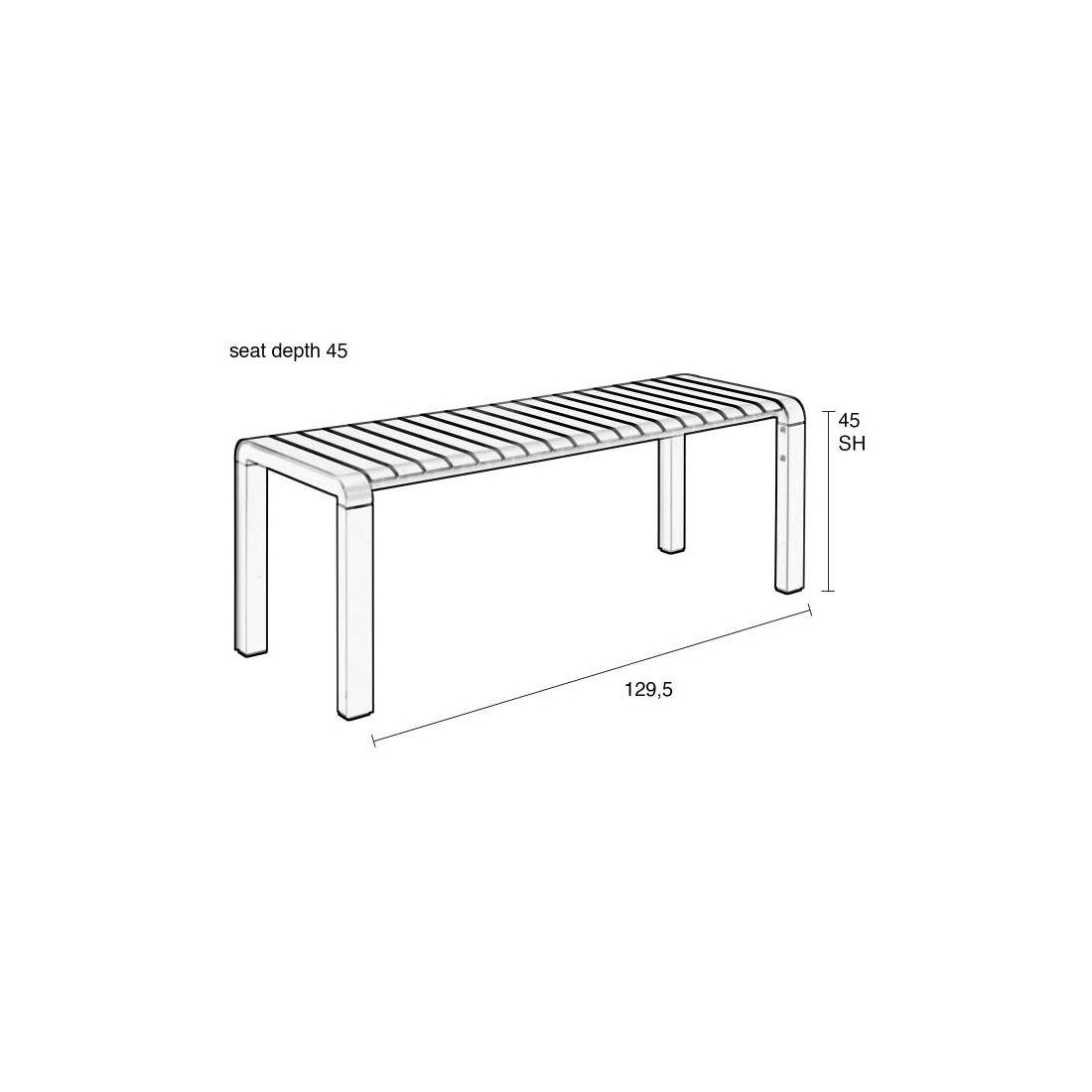 ZUIVER DUSK Vonda má hliníkovou konstrukci a je nastříkána v práškové barvě. Lavici je možne objednat ve třech barvách a dvou velikostech. Vhodná pro vnitřně a venkovní použití.