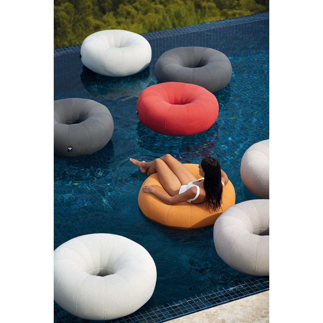Materiál: Výplň - 100% polystyrenové perličky, vhodné do exteriéru i pro použití v bazénu. Hmotnost předmětů se při kontaktu s vodou zvyšuje, tkanina je 100% prodyšná a umožňuje pronikání vody dovnitř. Po každém použití řádně vysušte. UV odolné.