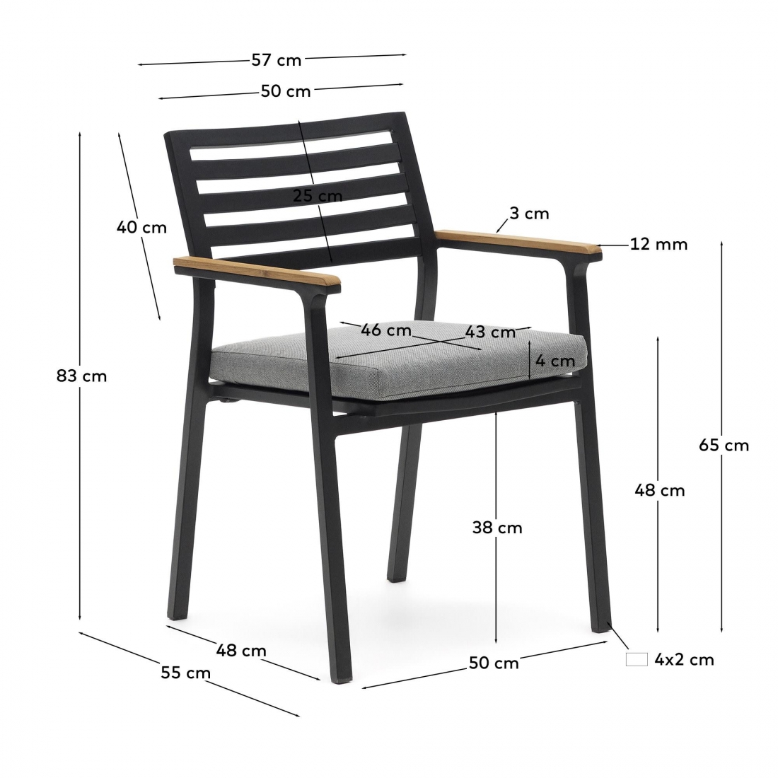 Židle BONA je navržena s důrazem na maximální komfort. Díky područkám z masivního teakového dřeva poskytuje optimální oporu pro ruce. S výškou sedáku 44 cm as čalouněním z látky a pěny poskytuje pohodlné sezení i během dlouhých letních večerů.