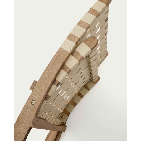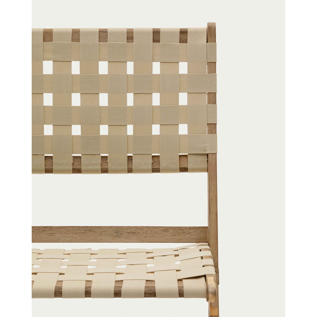 Křeslo z masivního akáciového dřeva. Kousek vyrobený z přírodních materiálů, takže každý bude exkluzivní, s vlastními odstíny a texturami. Dřevo se 100% certifikací spotřebitelského řetězce FSC a pocházející z modelu zodpovědného lesního hospodářství. Dostupné v jiných barvách. Vhodná do vnitřních a krytých venkovních prostor.