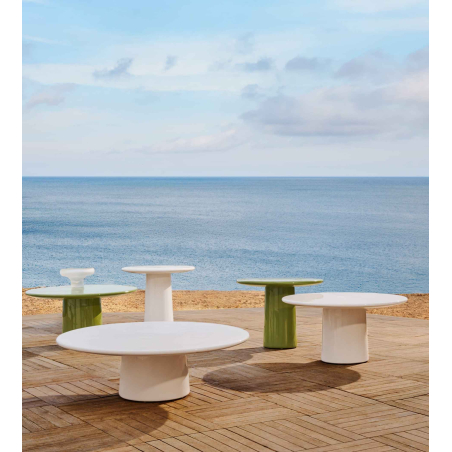 Cementový konferenční stolek s lesklou povrchovou úpravou. Albanella je vyrobena z GFRC, kompozitního materiálu vyztuženého skelnými vlákny, který nabízí lehkost, trvanlivost a větší odolnost proti opotřebení. Mikrotrhliny a nepravidelnosti, typické pro jeho povahu a změny teploty, dodávají charakter, aniž by byla ohrožena jeho celistvost, zdůrazňující jeho ručně vyráběnou autenticitu. Jeho lesklý povrch je nejen elegantní, ale také praktický, takže se snadno čistí a udržuje. Pro zachování jeho krásy doporučujeme dvakrát ročně aplikovat impregnaci na kámen. Vhodné pro vnitřní i vnitřní venkovní prostory.