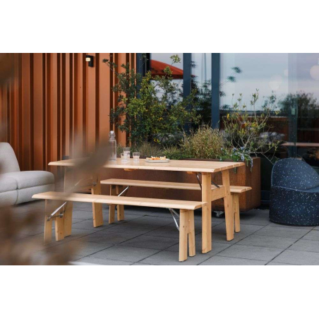 Rozkládací lavice a jídelní stůl Avenue. Sadu snadno složíte díky pantům, i když přijde letní déšť. Dřevo dodává nábytku svěží a přirozený vzhled, zatímco zaoblené hrany dodávají nábytku stylový nádech a extra pohodlí při sezení. Ve spodní části desky stolu je otvírák na lahve, který je ideální pro okamžité otevření všech vašich nápojů. Dodává se jako...