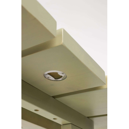 Rozkládací lavice a jídelní stůl Avenue. Sadu snadno složíte díky pantům, i když přijde letní déšť. Dřevo dodává nábytku svěží a přirozený vzhled, zatímco zaoblené hrany dodávají nábytku stylový nádech a extra pohodlí při sezení. Ve spodní části desky stolu je otvírák na lahve, který je ideální pro okamžité otevření všech vašich nápojů. Dodává se jako sestava se dvěma lavicemi a stolem. Vhodná do vnitřních i venkovních prostor.