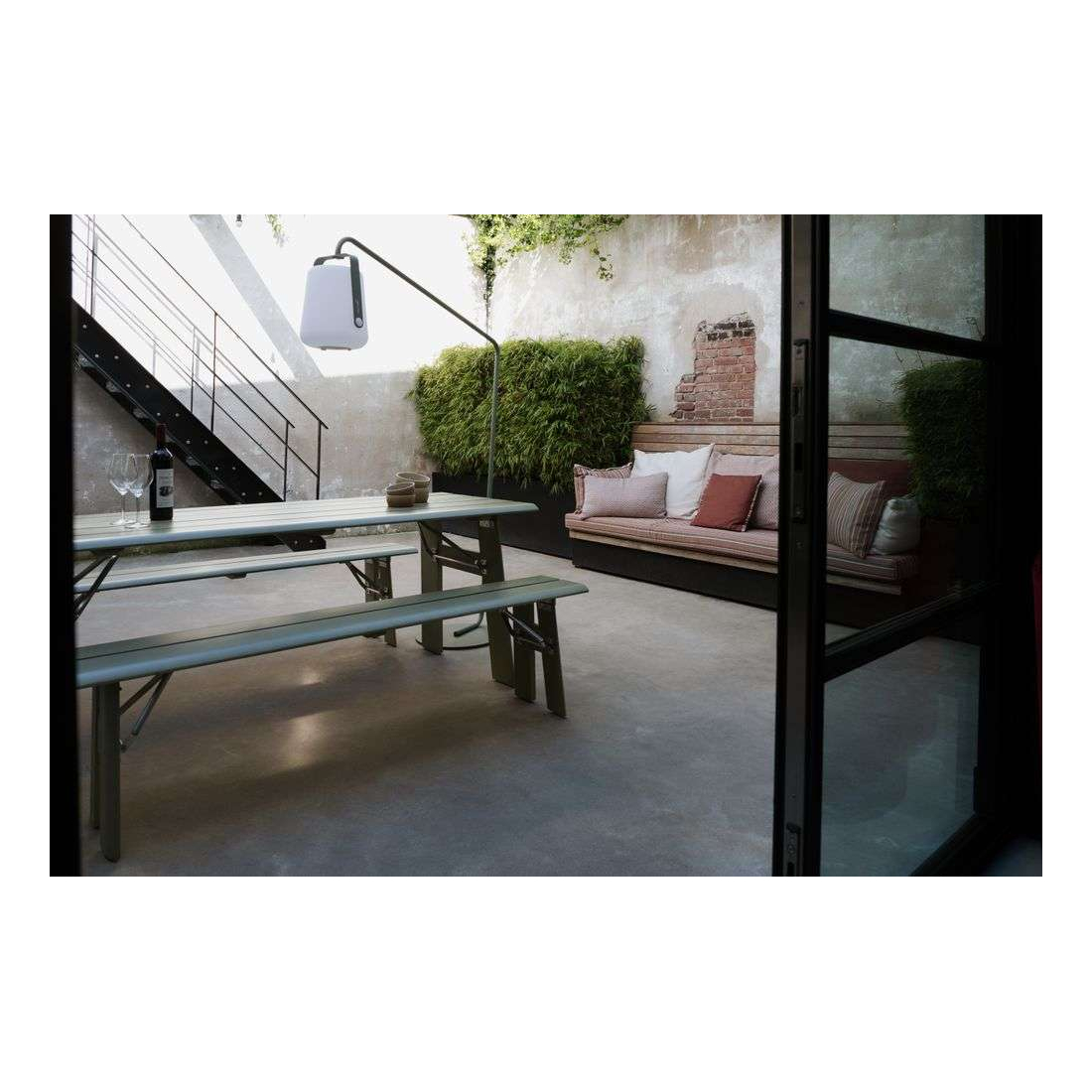 Venkovní piknikový stůl s moderním vzhledem. Ocel s černým práškovým nástřikem a dřevěnou deskou (FSC). Speciálně vyvinuté pro venkovní použití. Protože má dřevo Ayous otevřenou buněčnou strukturu, lze jej dokonale tepelně uchovat párou nebo tepelným zpracováním bez použití chemikálií. Dřevo se zahřívá až na 215 °C. Díky "pečení" je Thermo Ayous odolnější...