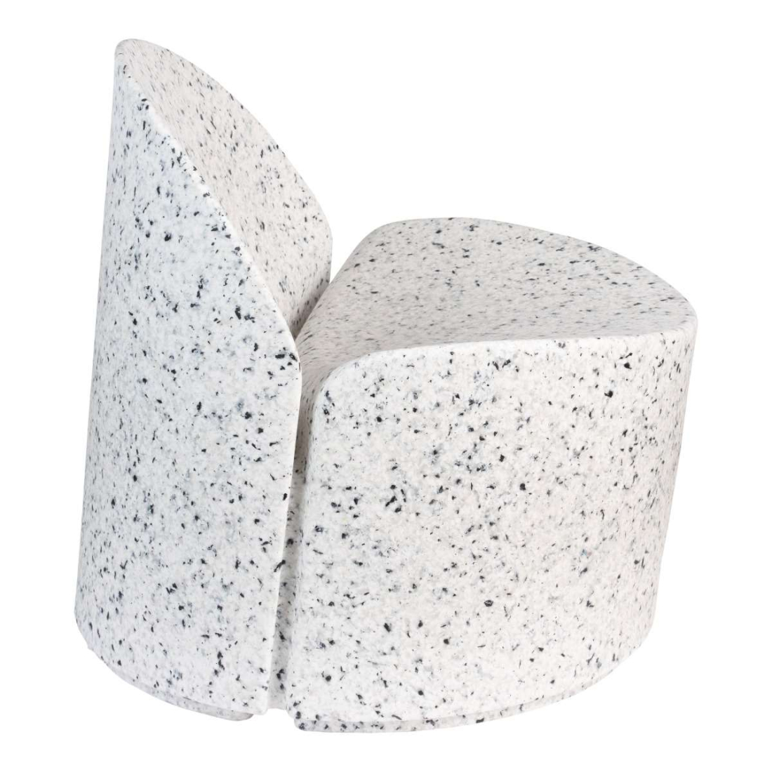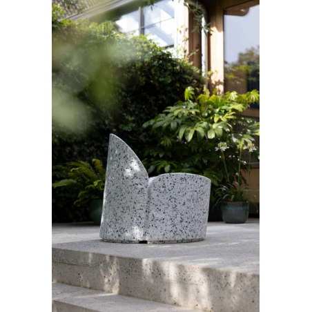 Designové křeslo Bloom vyrobené z ecopixelu, z recyklovaného odpadu. Inspirováno materiálem terrazzo nebo žula. Promění plastový odpad na něco krásného. Bloom je vybaveno skrytým odtokem dešťové vody, takže budete mít vždy suché sedadlo. Vhodné pro vnitřní a venkovní použití.
