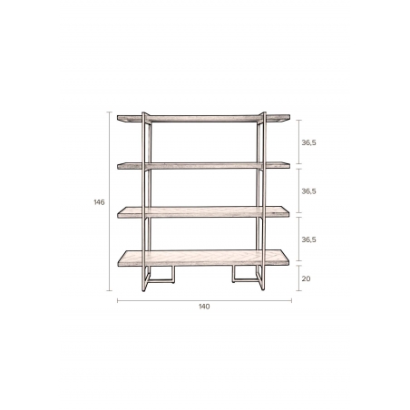 Police DUTCHBONE CLASS má 3police z akátového dřeva lakované s přírodním PU lakem. 20 mm železný rám je práškově stříkaný mosaznou barvou.